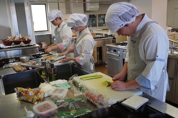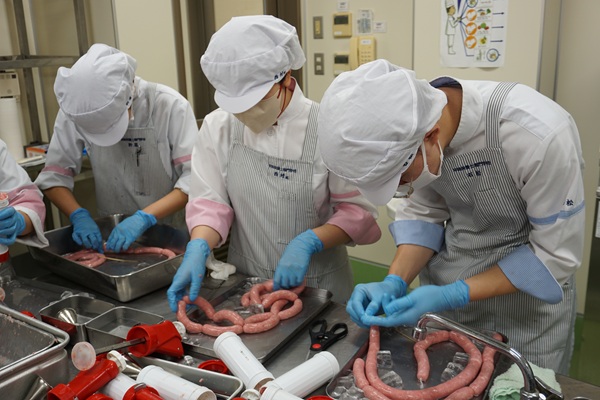 食のプロを目指す学生たちが活躍する「食品加工」パートでは、リハーサルに向けてソーセージの仕込みを行っています。