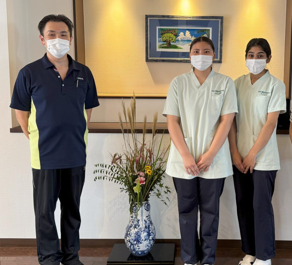 ▲ 左から:朝倉苑 指導者/パウデル アクリティ(ネパール出身)/バタラ バラト バハドゥール(ネパール出身)/楠本 悠月(福岡県 福岡農業高等学校出身)