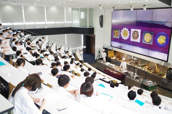 ホテルや有名店のシェフや企業の方にお越し頂き、実際の授業で学びます![]()