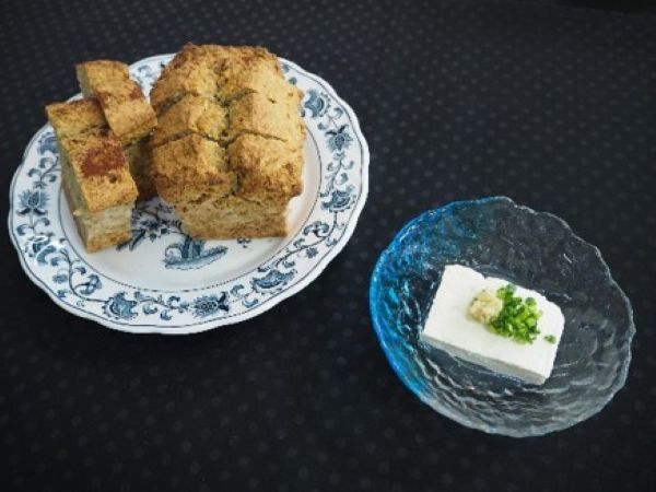 大豆を加工して作る豆腐と、その過程ででできたおからを使ったバナナブレッドです![]()