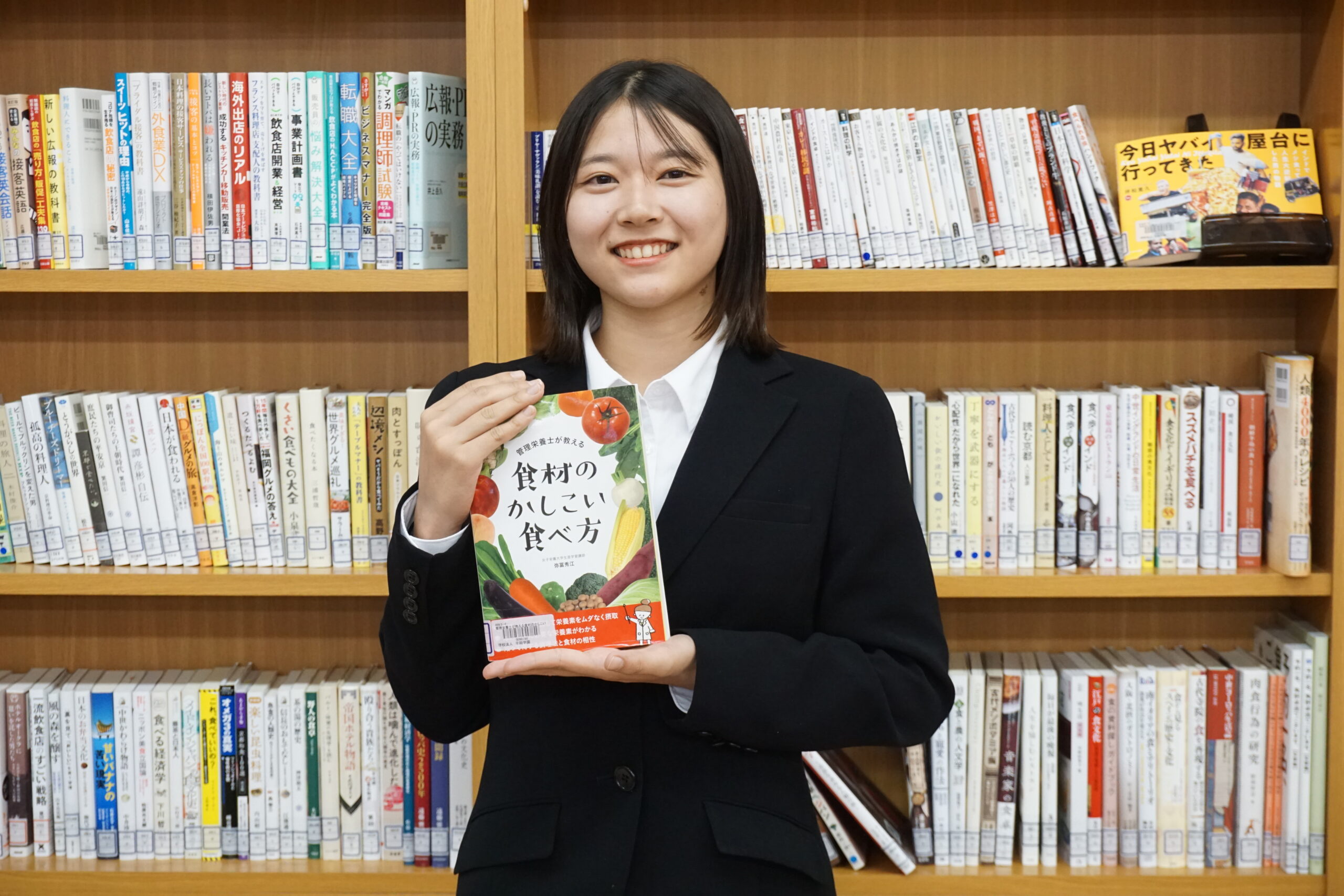 ▲栄養士科2年 西 優華さん(福岡県:福岡農業高校出身/内定先:コンパスグループ・ジャパン株式会社)