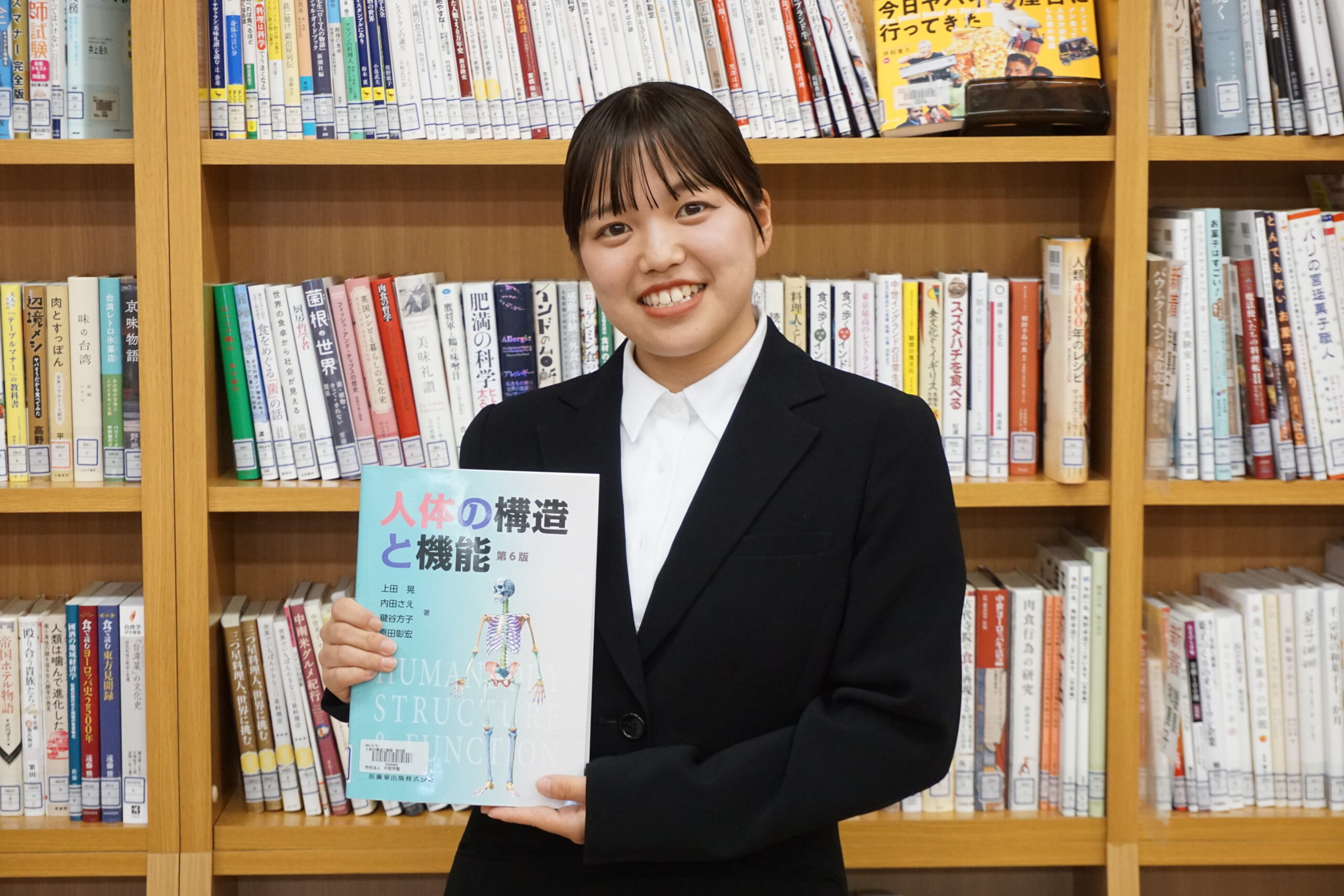 ▲栄養士科2年 渡邊 姫和さん(福岡県:東海大学付属高校出身/内定先:株式会社LEOC)