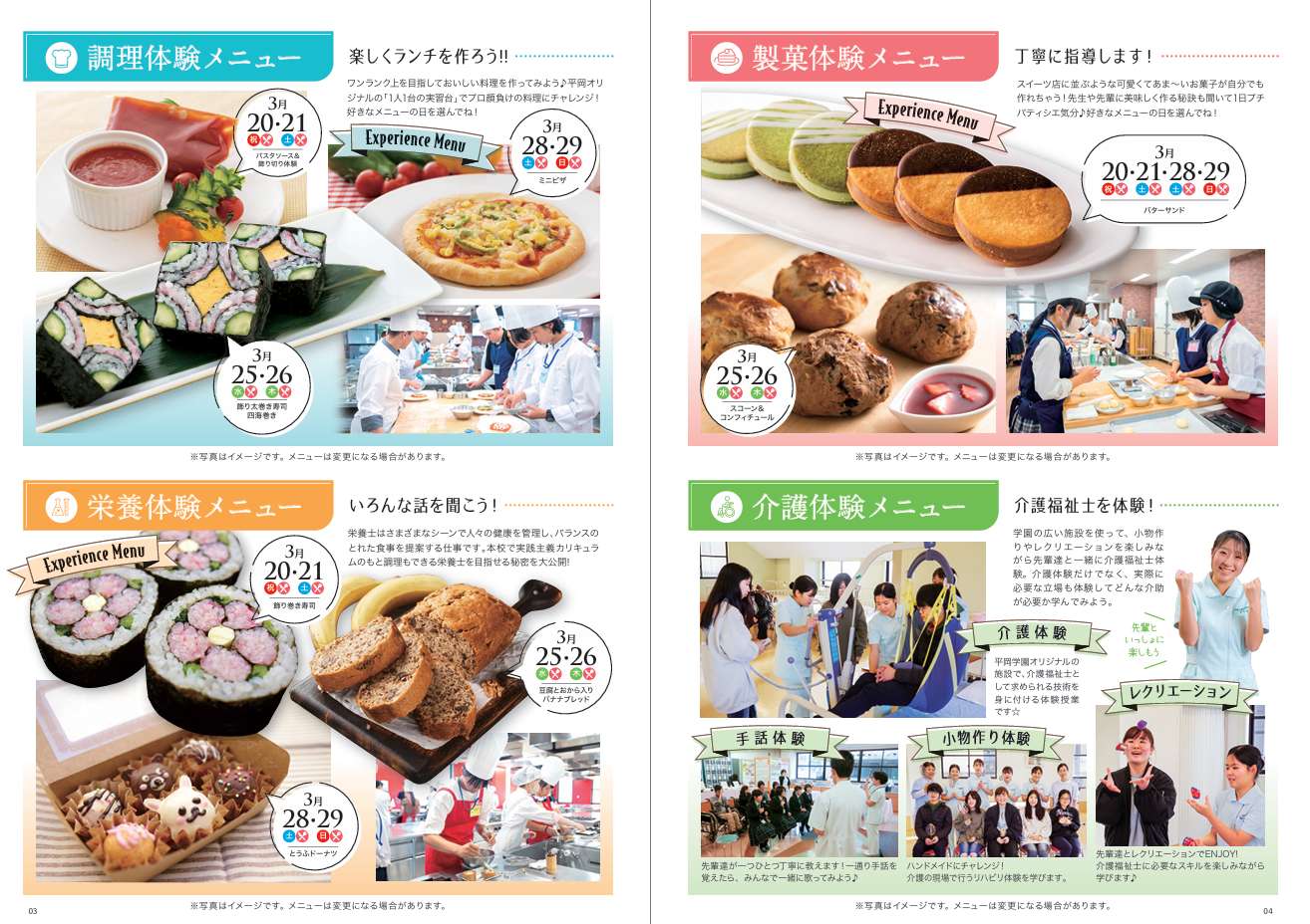 ☑ 調理・製菓・栄養・介護の分野で進路をお考えの方