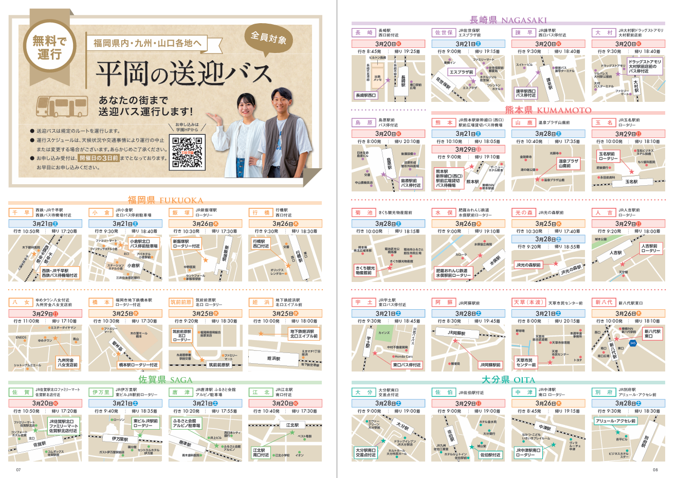 ①九州各県・山口県から出発する無料送迎バス↓