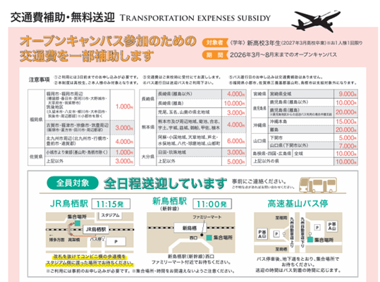 ※ご利用には、オープンキャンパス開催日の3日前までのお申し込みが必要です。