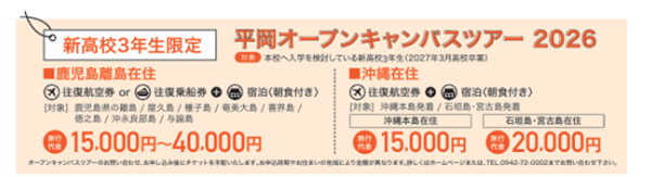 ④↓【高校3年生で沖縄県・鹿児島県離島在住者の方限定】オープンキャンパスツアー!↓
