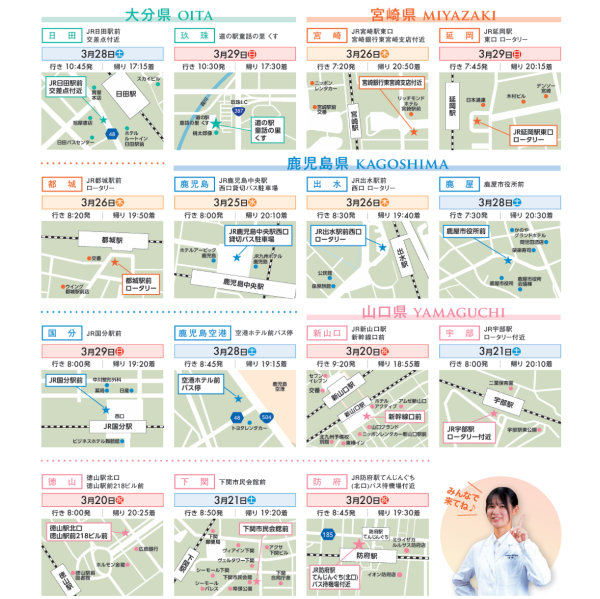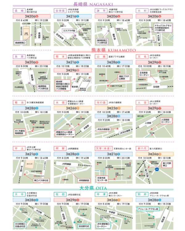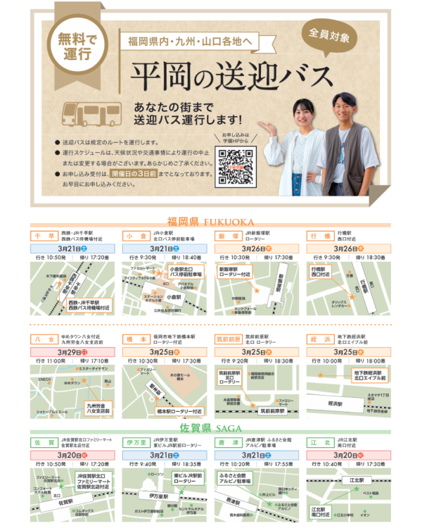 また、九州山口各県より無料送迎バスも運行中![]()