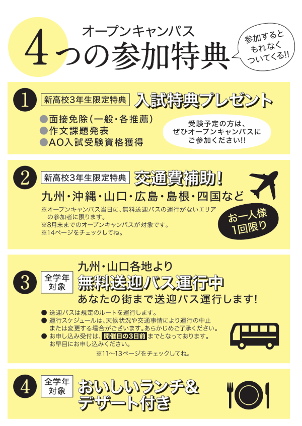 送迎バスご利用の際は、参加されるオープンキャンパス開始3日前までのご予約が必要となります!
